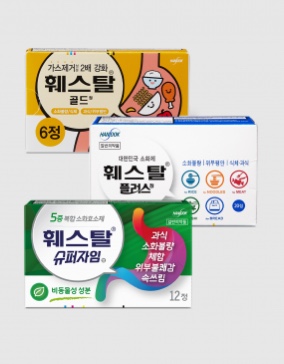 -훼스탈 골드: 편의점 전용 제품으로 포장 단위는 6정 1박스로 되어 있으며 가스 제거 기능을 강화한 제품입니다.